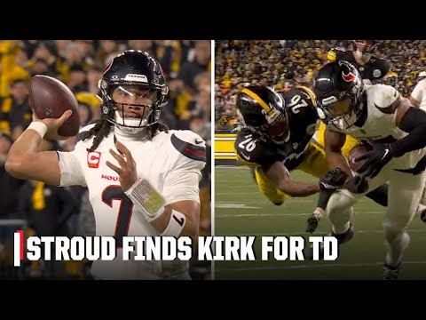 Share Facebook Twitter LinkedIn Pinterest Email C.J. Stroud connects with Christian Kirk on a 6-yard touchdown to give the Texans a 7-3 lead over the Steelers in the AFC Wild Card matchup on Monday Night Football. ✔️ Subscribe to ESPN Unlimited: https://plus.espn.com/ #ESPN #NFL
