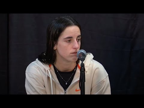 Caitlin Clark addresses the media following her 20-point performance in her professional basketball debut.