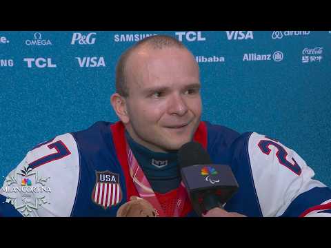 Josh Pauls speaks to Andrea Joyce after captaining the United States to gold for the third time, becoming the only sled hockey athlete in history to win five Paralympic titles.