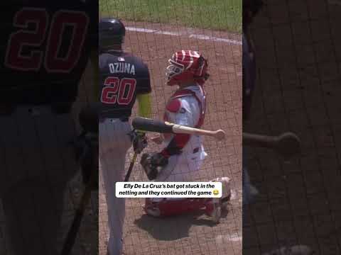 Elly De La Cruz’s bat got stuck in the netting ๐ #bat #stuck #mlb #baseball #reds
