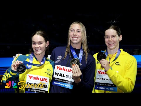 Gretchen Walsh receives gold during medal ceremony for women’s 50m butterfly at worlds | NBC Sports