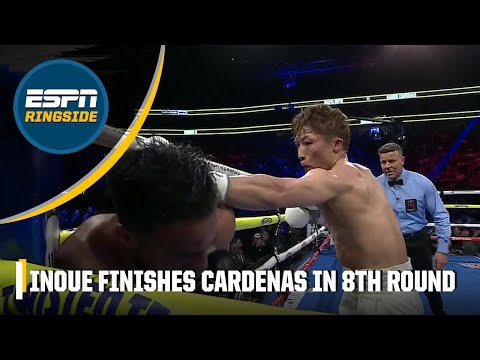 Naoya Inoue improves to 30-0 after defeating Ramon Cardenas in the eighth round via TKO in their junior featherweight championship fight.