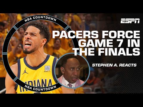 NBA Countdown’s Malika Andrews, Stephen A. Smith, Bob Myers and Kendrick Perkins react to the Indiana Pacers’ 108-91 win in Game 6 to even up the NBA Finals at 3-3 with the Oklahoma City Thunder.