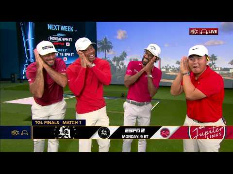 Share Facebook Twitter LinkedIn Pinterest Email Tiger Woods, Max Homa, Tom Kim and Akshay Bhatia join Scott Van Pelt on SportsCenter after the Jupiter Links’ 9-5 win over Boston Common Golf to advance to the TGL finals. ✔️ Subscribe to ESPN Unlimited: https://plus.espn.com/ #ESPN